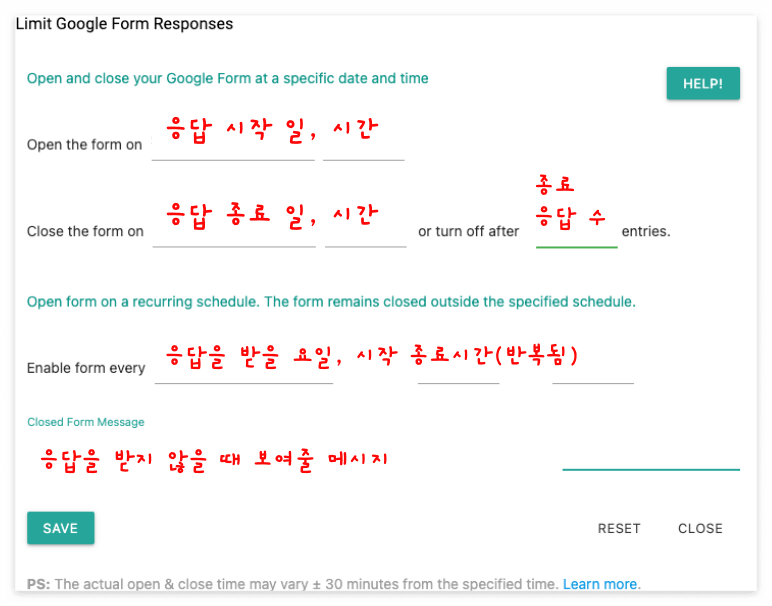 선착순 응답 또는 설문 시작, 종료 시간 제한 걸기
