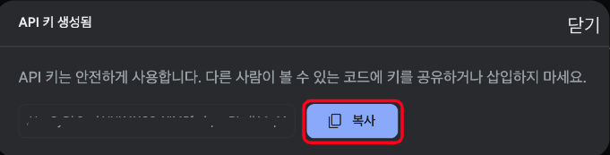 - 키가 노출되지 않도록 주의 하세요