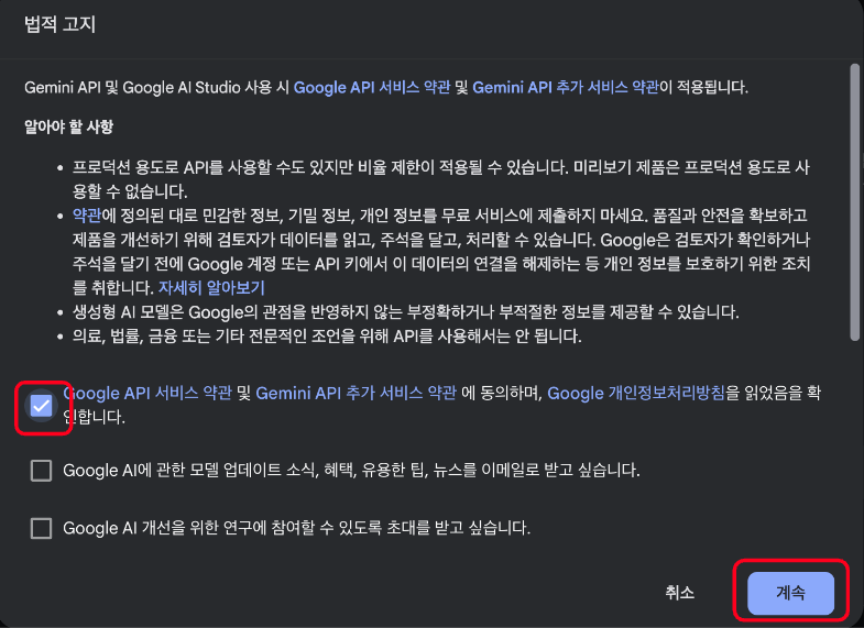 2. 약관을 읽고 체크 후 계속