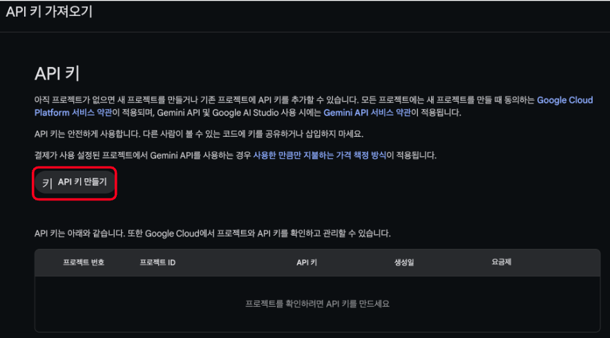 3. API Key 만들기 클릭