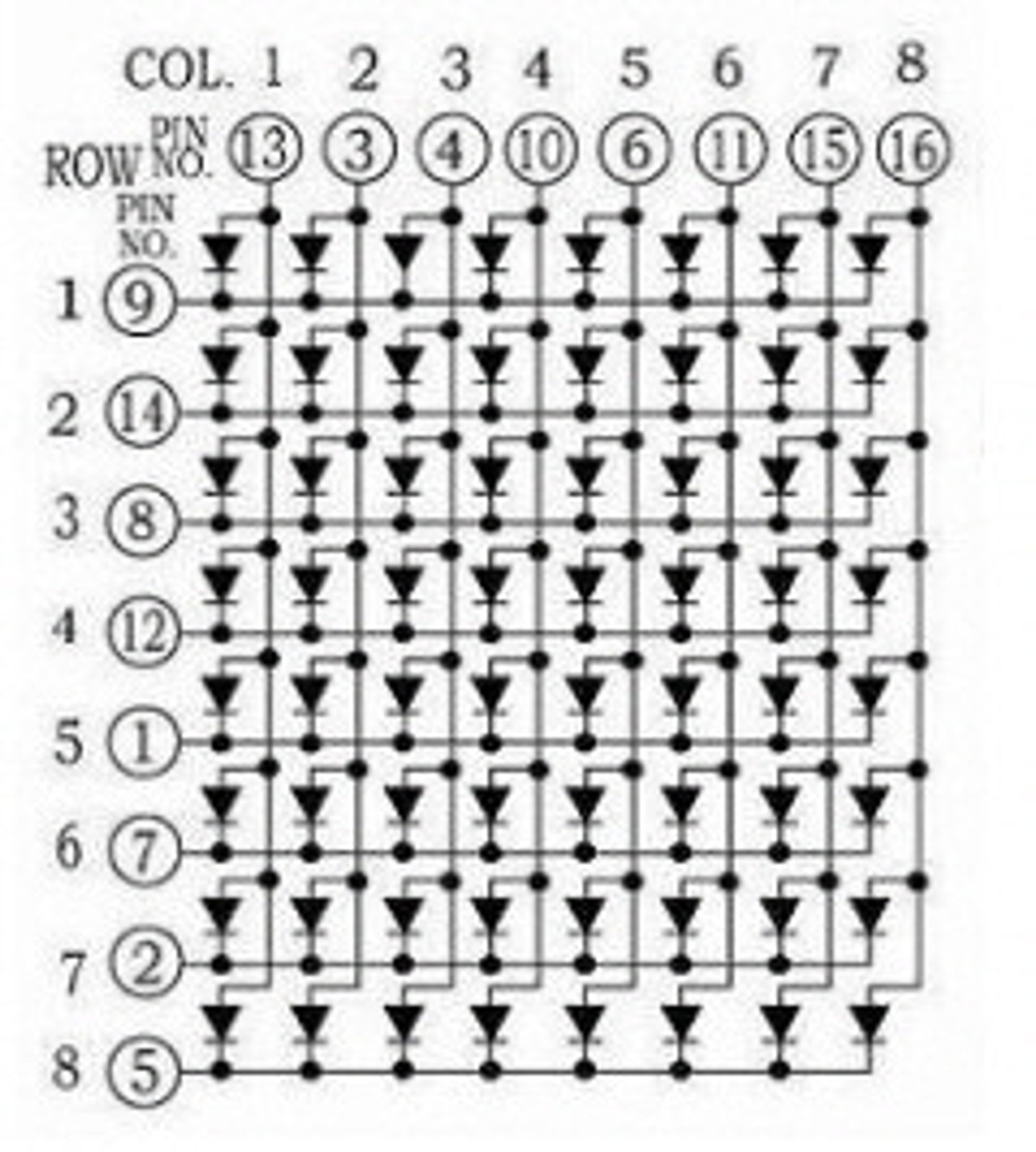 int pins[17]= {-1, 2,3,4,5,6,7,8,9,10,11,12,13,14,15,16,17 }; // 매트릭스의 핀번호 1~16 번까지 연결되는 아두이노 핀을 순서대로