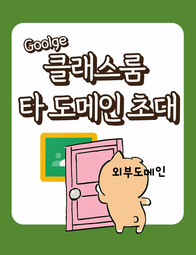 클래스룸에 타 워크스페이스 사용자  초대하기 클래스룸에 다른 도메인의 워크스페이스 학생을 초대하거나클래스룸을 다른 도메인의 교사를 공동 교사로 초청하여 같이 운영하려면워크스페이스 관리자가 관리 콘솔에서 도메인을 허용처리 해야합니다.도메인 허용처리는 초대하려는 워크스페이스와 초대 받는 워크스페이스 두곳 모두에서 각 상대의 도메인을 추가해줘야 합니다. 각 관리자 - 관리 콘솔 - 계정 - 도메인 - 허용된 도메인 - 타 도메인 추가허용하고자 하는 워크스페이스의 도메인 추가 개인gmail 계정 사용자도 공동교사나 학생으로 초대할 수 있으며허용된 도메인에 gmail.com 도메인 추가가 아닌관리 콘솔  클래스룸 앱 설정에서 내 도메인 수업에 참여할 수 있는 사용자를 모든 사용자로 설정 해야 합니다. 관리 콘솔 ..