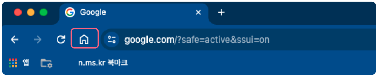아래 사진처럼 새로고침 오른쪽 홈버튼을 보이도록 설정하려면 개인이 각자 자신의 크롬 설정메뉴에서 보이도록 설정해야 합니다.