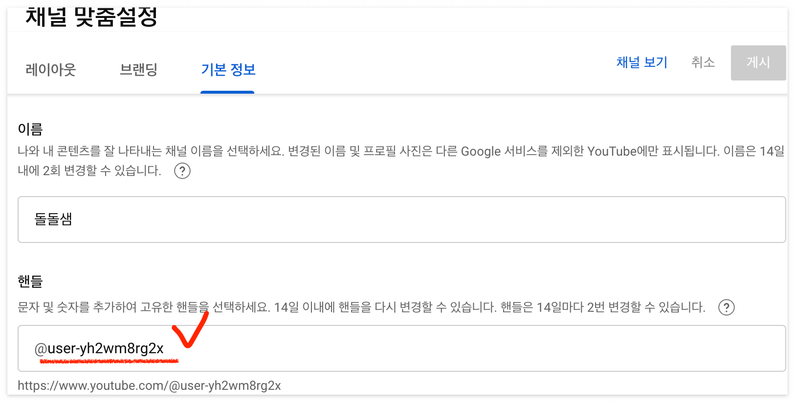 youtube URL이 되어 쉽게 채널을 찾기도하며 (예 youtube.com/@user~~~)